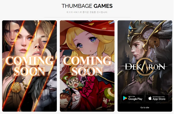 썸에이지는 다양한 게임을 출시하고 있으며, 특히 'DEKARON'과 같은 대작 게임이 주목받고 있습니다. 이 외에도 여러 게임이 준비 중이며, 이는 회사의 성장 가능성을 더욱 높이고 있습니다. 최근 발표된 게임 커버를 보면, 다양한 장르와 스타일의 게임이 포함되어 있어 소비자들의 기대를 모으고 있습니다.